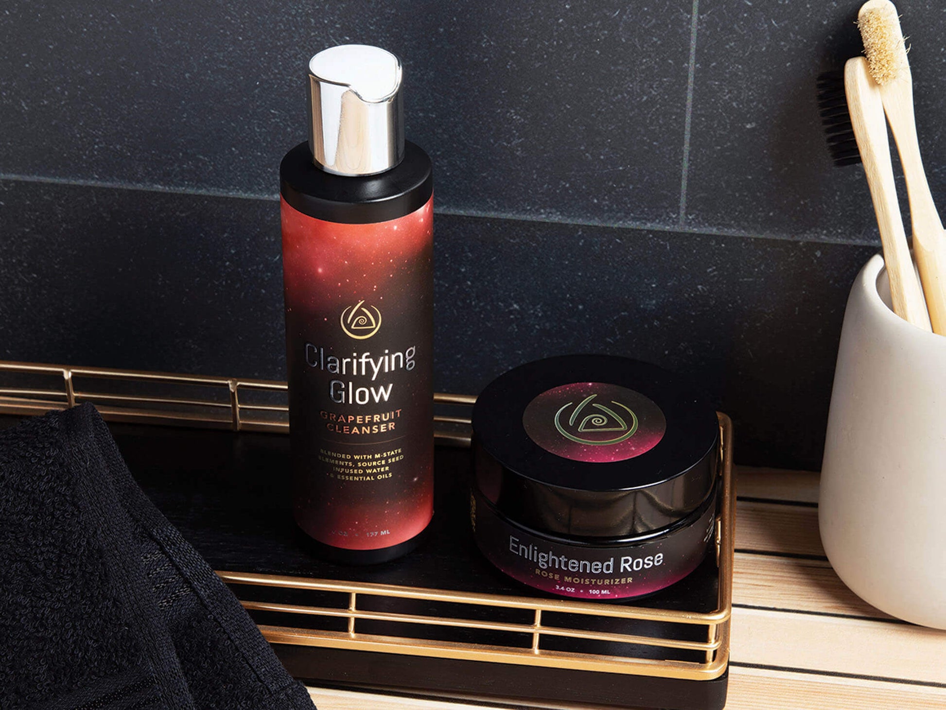 - Enhanced Cellular Regeneration: Formulated with M-States and Source Seed Water, both Clarifying Glow and Enlightened Rose remove energetic toxins and promote cellular regeneration, restoring your skin’s natural radiance.